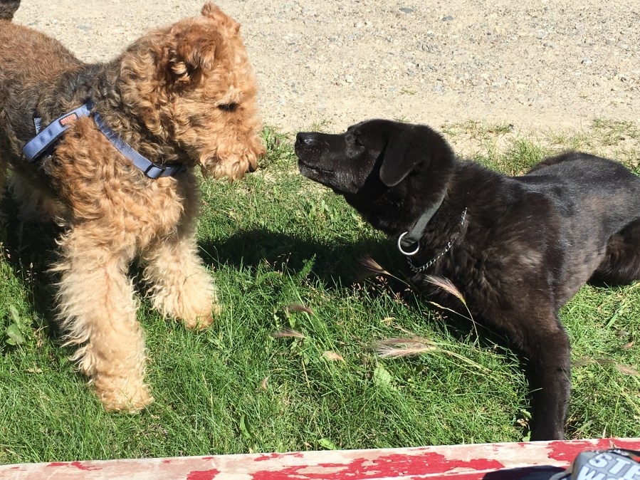 Kara’s neighbor’s dog Poncho stopped by after the ride and we had words. He would become my first Alaskan boyfriend, but he didn’t know it yet.