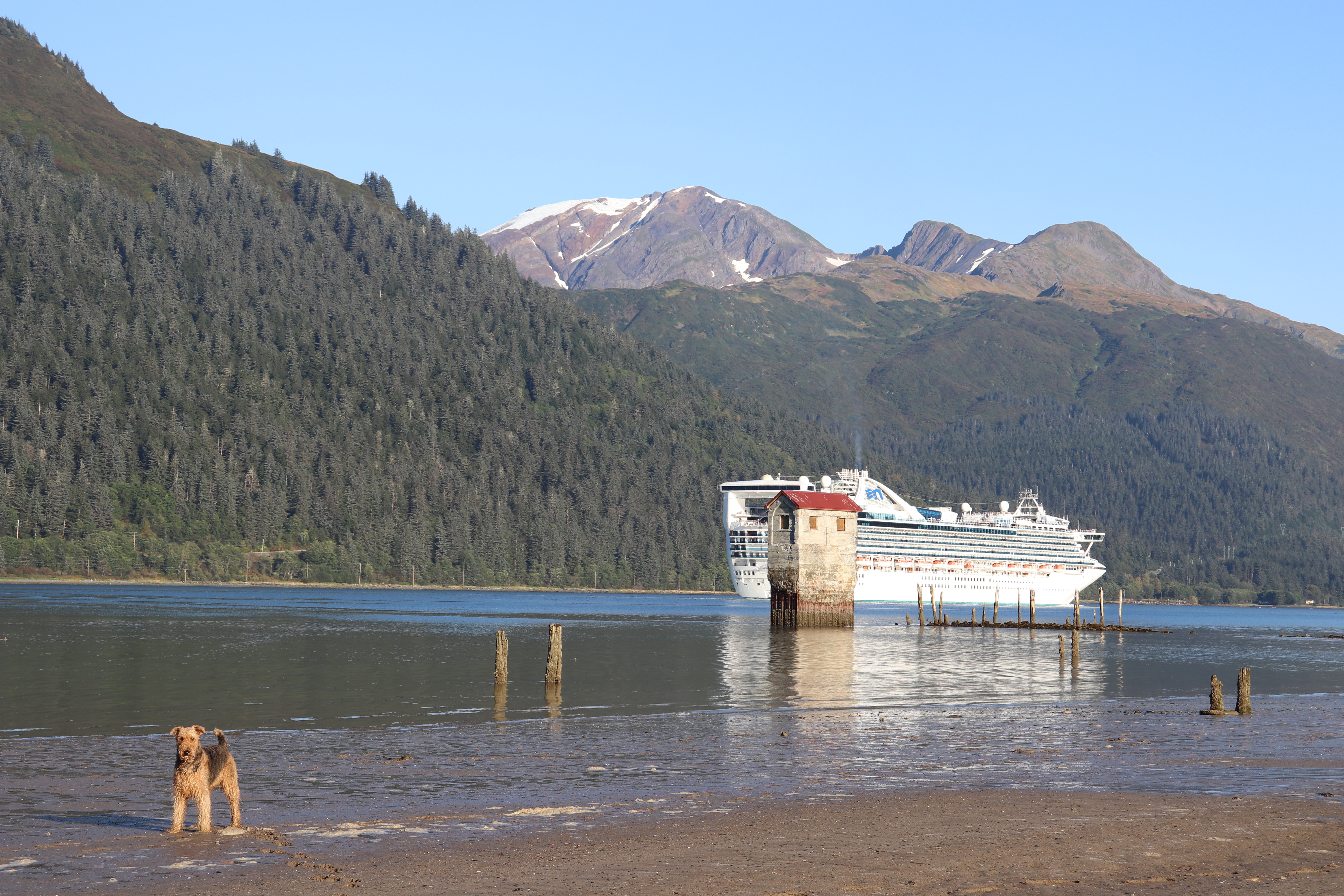 There is that pump house again but this time there is a cruise ship also visible in the background.