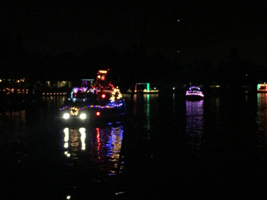 Christmas Eve boat parade down the canal. There are about 20 boats that cruise around with lights.
